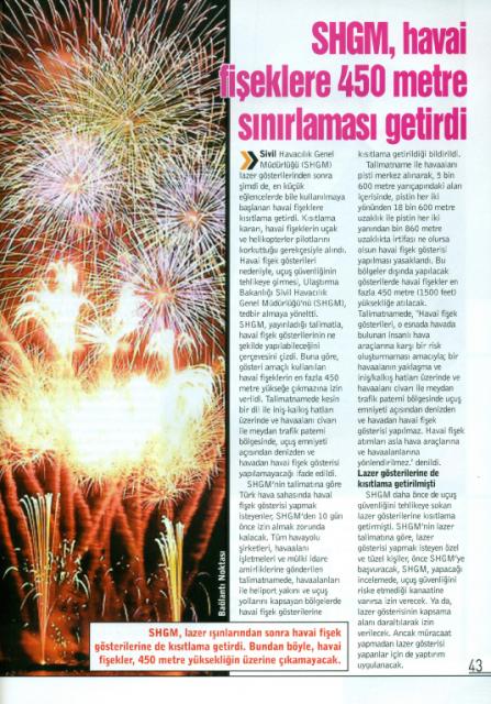 SHGM, HAVAİ FİŞEKLERE 450 METRE SINIRLAMASI GETİRDİ...11.09.2009