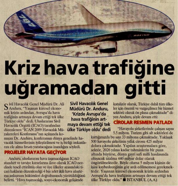 KRİZ HAVA TRAFİĞİNE UĞRAMADAN GİTTİ... 29.09.2009