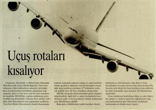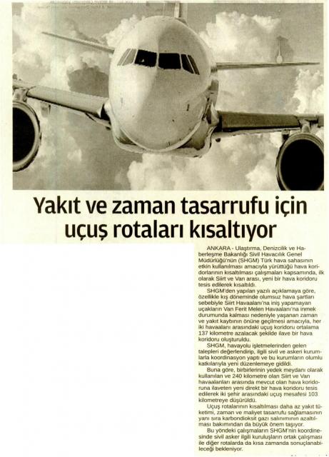 YAKIT VE ZAMAN TASARRUFU İÇİN UÇUŞ ROTALARI KISALTILIYOR... 26.02.2013