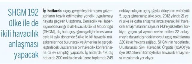 SHGM, 192 ÜLKE İLE DE İKİLİ HAVACILIK ANLAŞMASI YAPACAK... 25.02.2013
