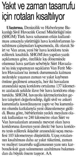 YAKIT VE ZAMAN TASARRUFU İÇİN UÇUŞ ROTALARI KISALTILIYOR... 25.02.2013