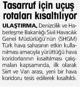 TASARRUF İÇİN UÇUŞ ROTALARI KISALTILIYOR... 23.02.2013