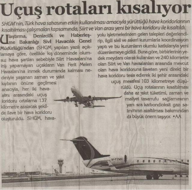 UÇUŞ ROTALARI KISALIYOR... 23.02.2013